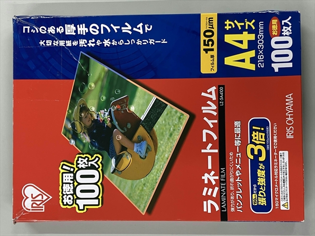 「アイリスオーヤマ ラミネートフィルム 150μm A4サイズ 100枚入 LZ-5A4100 2,545円」