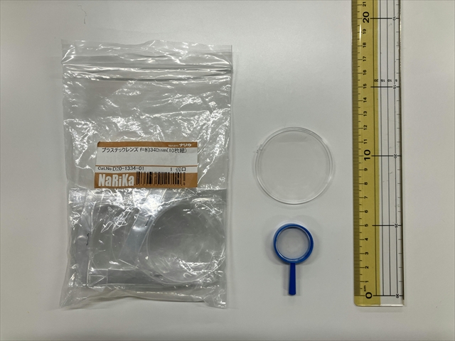 「プラスチックレンズ(とつレンズ)(10枚組)f=約340mm 728-109 10枚 1945円」ナリカの製品ですが、スマートスクールで購入できます。