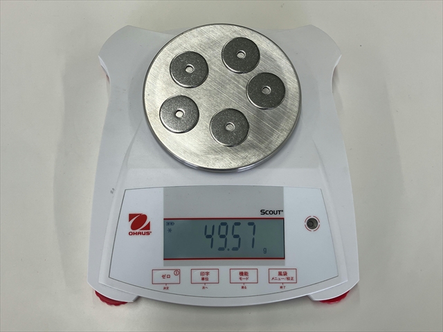 1枚がちょうど10g(約0.1N)。専用のおもりよりも精度がいいぐらいです。