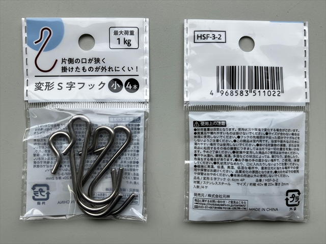 HSFー3ー2 変形S字フック小 4P 4cm 税込110円