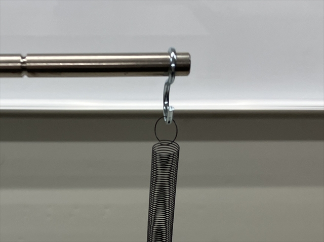 1 鉄製スタンドにフック(小)でばねを取り付ける。
