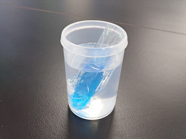 容器(バイアルびんやビーカー)に入れてみて、ちょうどよい長さにはさみで切る。