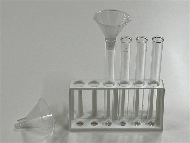 (なくてもいいのですがあると便利です。薬品を試験管に入れるときに使用します。足外径が15mmなので18×18の試験管にピッタリです。送料などがかかってちょっと高いのですが、他の実験にも使えて時短になります。)