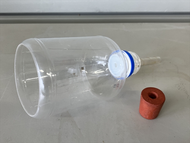 3 途中まで穴の開いたゴム栓を作り、ガラス管の先端にかぶせて蓋にします。