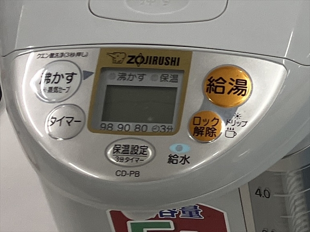 ・電気ポットで50℃のお湯をつくる。(水温が50℃になったときに、タイマーのボタンを押すと、お湯は出るけれども加熱はストップした状態になります。) 瞬間湯沸かし器のある学校は、そこから適当な温度の湯を取ることもできるかと思います。