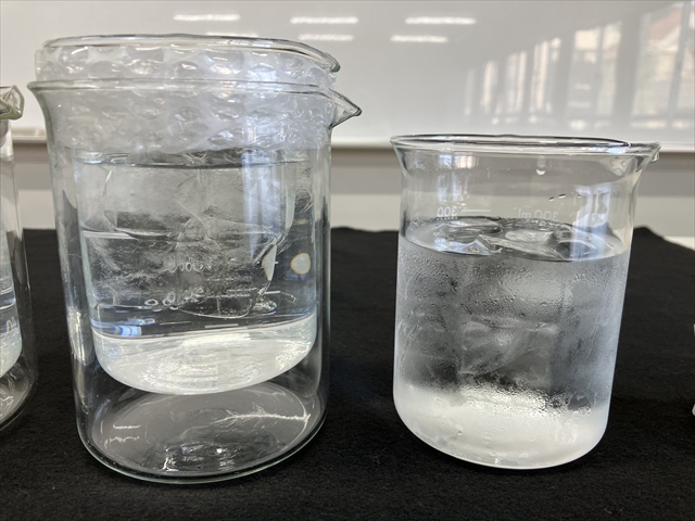 【動画:二重ビーカーと普通のビーカーのくもりぐあいの比較】