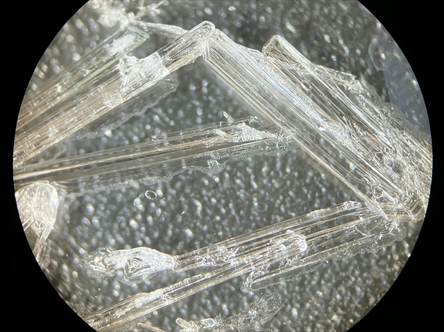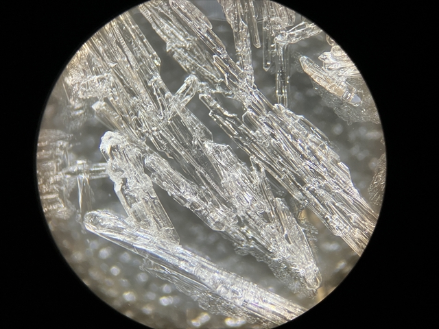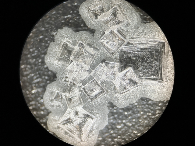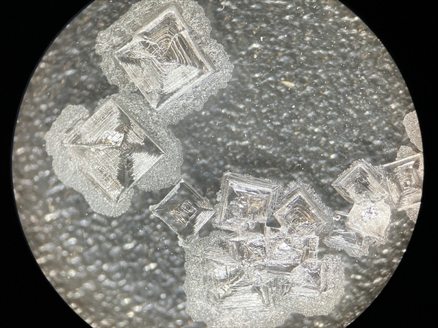 ルーペでも観察できますが、双眼実体顕微鏡の方が断然いいです。特に食塩の方は立体的に見えるので感動的です。
