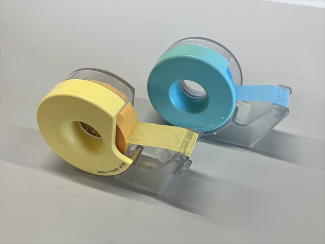 ウ 試験管に貼るラベルについては、マスキングテープ(3M スコッチ マスキングテープ 18mm)を利用しています。白表紙にクラフトテープを貼り、その上にマスキングテープを貼ります。カッターで切れ目を入れ、各小片に油性ペンでABC等を記入し、これを試験管等に貼り付けます。後で手で簡単にはがすことができ、跡が残りません。