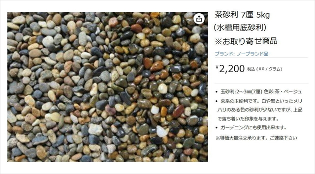 礫(茶砂利 7厘(2~3mm) 5kg (水槽用底砂利)1,980円 アマゾンで購入)